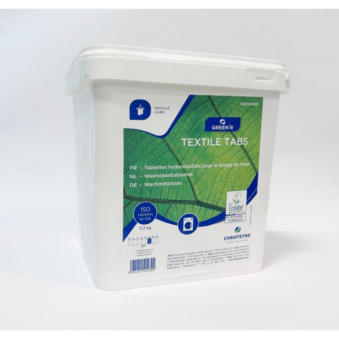 In water oplosbare tabletten voor het wassen van textiel, zelfs bij lage temperaturen. Eenvoudig te gebruiken; de tabletten kunnen rechtstreeks in de trommel van de machine geplaatst worden. Niet geschikt voor handwas.