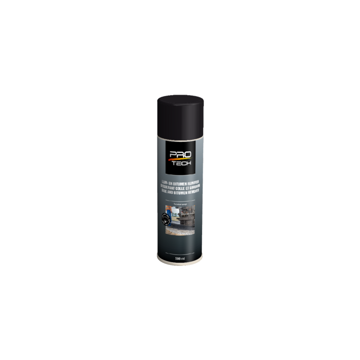 PRO-Tech Lijm-en bitumen remover is speciaal ontwikkeld voor het snel en veilig verwijderen van resten stickerlijm, bitumen, pur, teer en lijmachtige polyurethaan, kitten, olie, tectyl, plakbandresten en vele andere kleverige resten.
